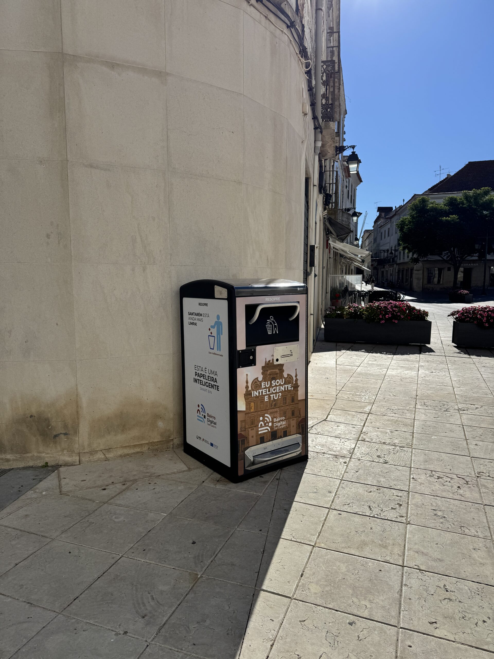 O Ecoponto/Papeleira Inteligente constitui uma solução inovadora implementada no Bairro Digital de Santarém, com o objetivo de promover práticas mais sustentáveis e eficientes na gestão de resíduos urbanos.